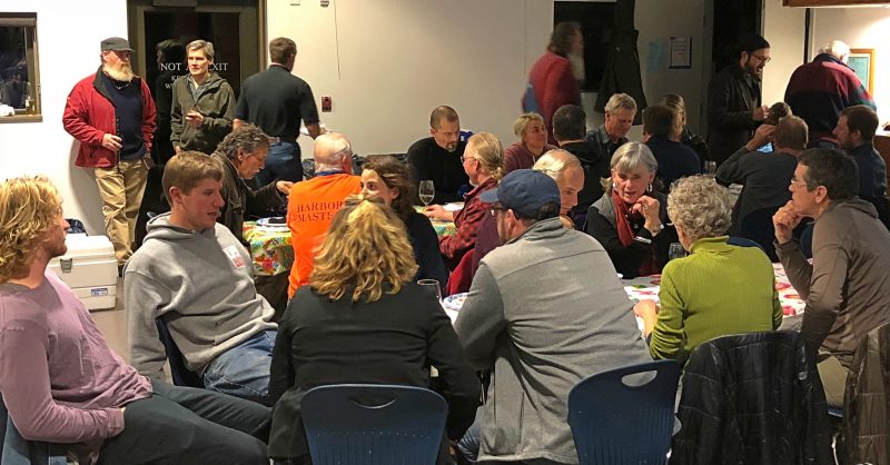 Last Thursday (11/16) we celebrated the 2017 racing season. About 50 people showed up at the Cotton building with lots of food, they drank some beer or wine, saw a great slide show, talked with friends, and cheered as the award winners got their trophies. Racing is about being on the water, but it’s also about the friends and the stories we make in the process. On this night we got to enjoy both. Checks were given out to the Sea Scouts, the high school sailing team, and the NW Maritime Center for their youth programs in memory of Ted Pike. If you missed it, don’t worry, we’ll be having another party in the spring to kick off the 2018 season of racing on Port Townsend Bay! Lots more pictures of the festivities, including all of the trophy winners, can be found here on the PTSA picture sharing site.