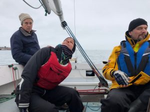 It was relatively warm on the first Saturday of the the new year and two Thunderbirds, Thatuna and Owl, took advantage of it to get in a race. Two laps from Indian Point around the tower. The wind was pretty good and it didn’t rain. Owl prevailed but it was a close fought contest.