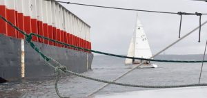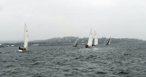 With a steady southerly, a windward-leeward course using G and I was reasonable, and Joe, as always, was fine tuning the start line. Shortly before the start, the wind began to build from the west and the RC pulled the line and started cruising the bay in search of a course. No good options were available with fixed marks, so the decision was made that if everyone was going to be wet and cold they might as well be racing. The Dunlap barge near the mill was selected for the windward(?) mark and C was selected for the leeward(?) mark. Rain was intermittent and winds were generally mid to upper teens with gust well into the 20’s. Everyone finished.