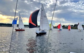 We managed to complete three short W/L races with course SILF. The wind was steadily from NW and the line square if rather short. For the first race the wind was hovering around 6 kts. The second around 5 kts. The third race also started with the wind around 5 kts. but as the fleet was rounding the leeward mark the wind died almost completely. It slowly strengthened, from the NE, enough for the fleet to finish but not suitably to start a planned fourth shorter race.