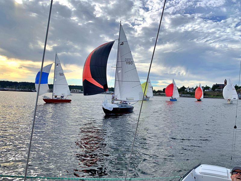 We managed to complete three short W/L races with course SILF. The wind was steadily from NW and the line square if rather short. For the first race the wind was hovering around 6 kts. The second around 5 kts. The third race also started with the wind around 5 kts. but as the fleet was rounding the leeward mark the wind died almost completely. It slowly strengthened, from the NE, enough for the fleet to finish but not suitably to start a planned fourth shorter race.