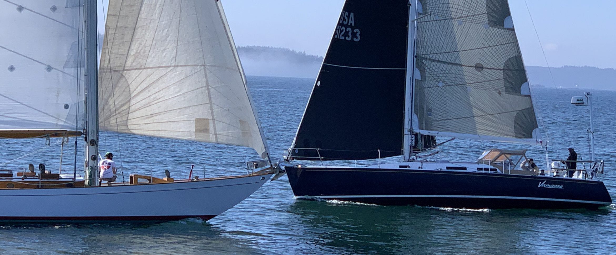 With a light wind the fleet took off into the fog at 10am on Saturday. Not all results are in but it sounds like it was an interesting day. Several boats stayed close to shore around point Wilson and ran into kelp and a back eddy. Falcon reported that they got stuck in the kelp patch from which it took them an hour to get out then they turned around and went home. Kolas finally got to Protection Island around 5pm before giving up. Rumor has it that Pacifica turned around at McCurdy Point. The visiting F31 trimaran owned by Vincent Depillis finished at 5:37 pm, however they later reported flying a spinnaker (prohibited by the special pandemic rules) and so were DSQ’d. No word yet on the other boats.