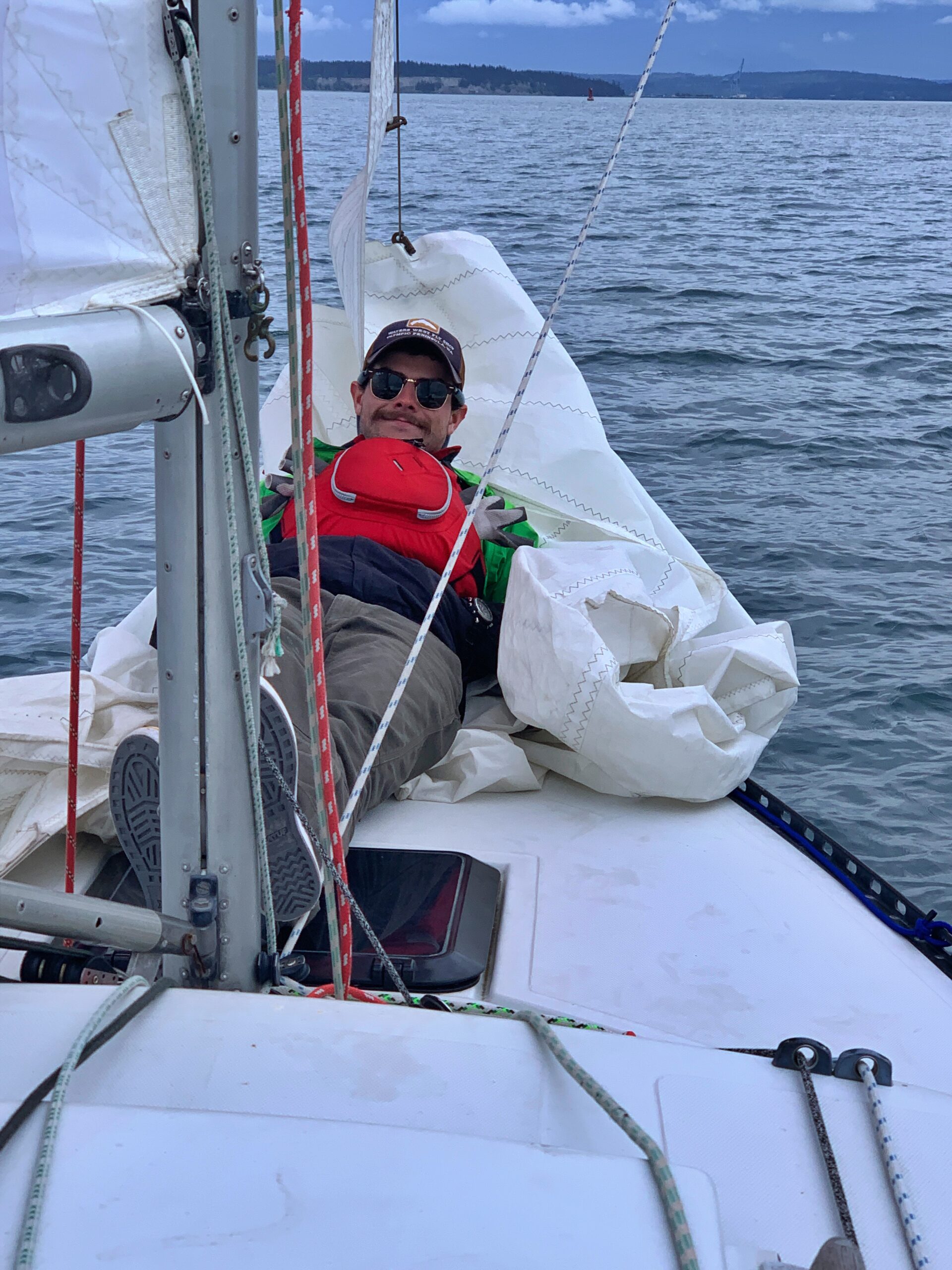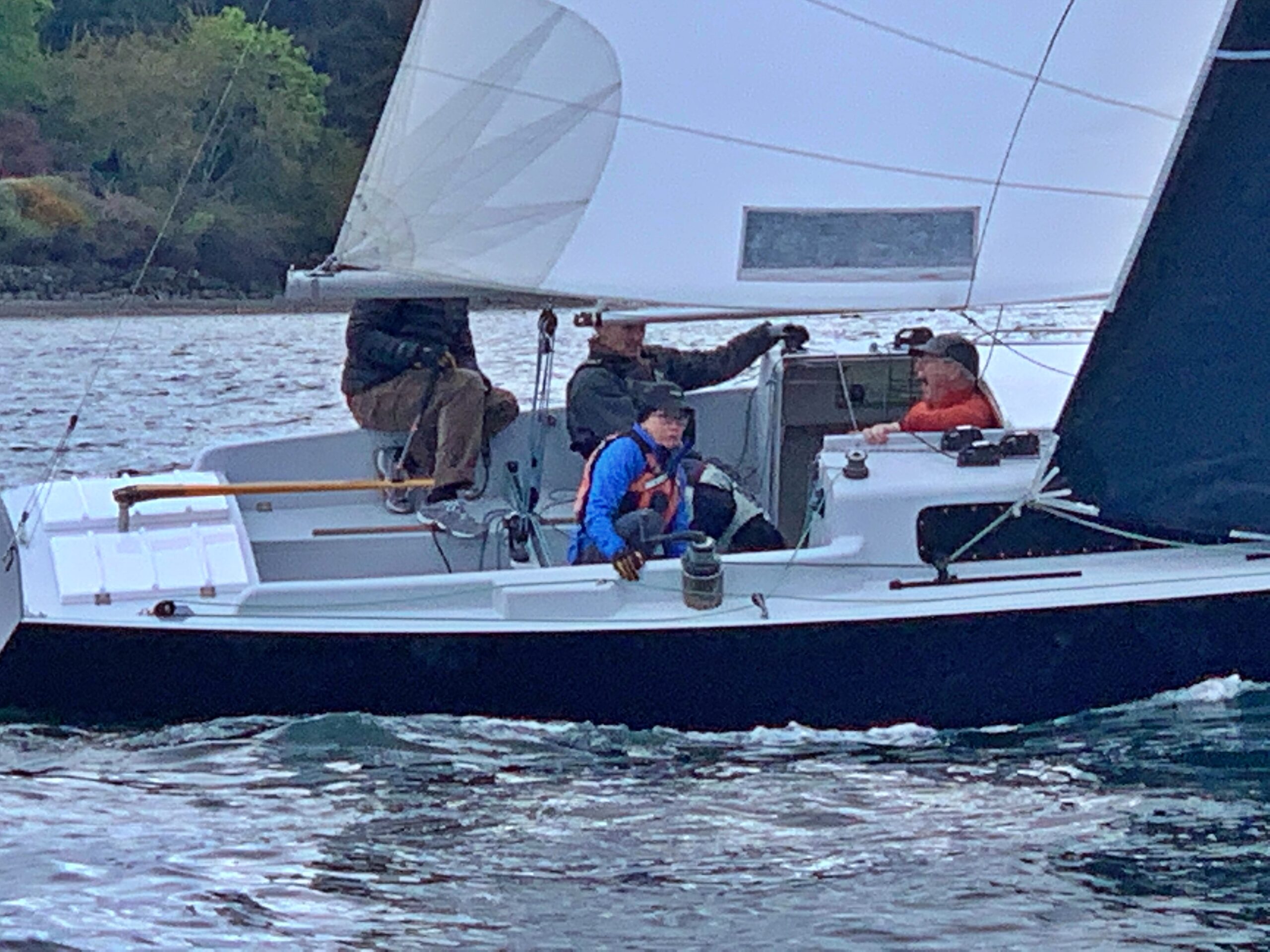 The original plan was to start at City Dock and go to the Point Hudson buoy then do two laps to the northern most morning buoy at Ft Warden and back to the PH buoy. The wind didn’t cooperate, but we did get one lap in. Falcon got a good start and lead to near the Marine Science Center where Corvo made a good decision to go way inshore and pulled ahead at the turning mark. Kuma San tried to catch up to no avail. Varya (such a beautiful boat) struggled in the light wind but enjoyed a nice evening on the water.