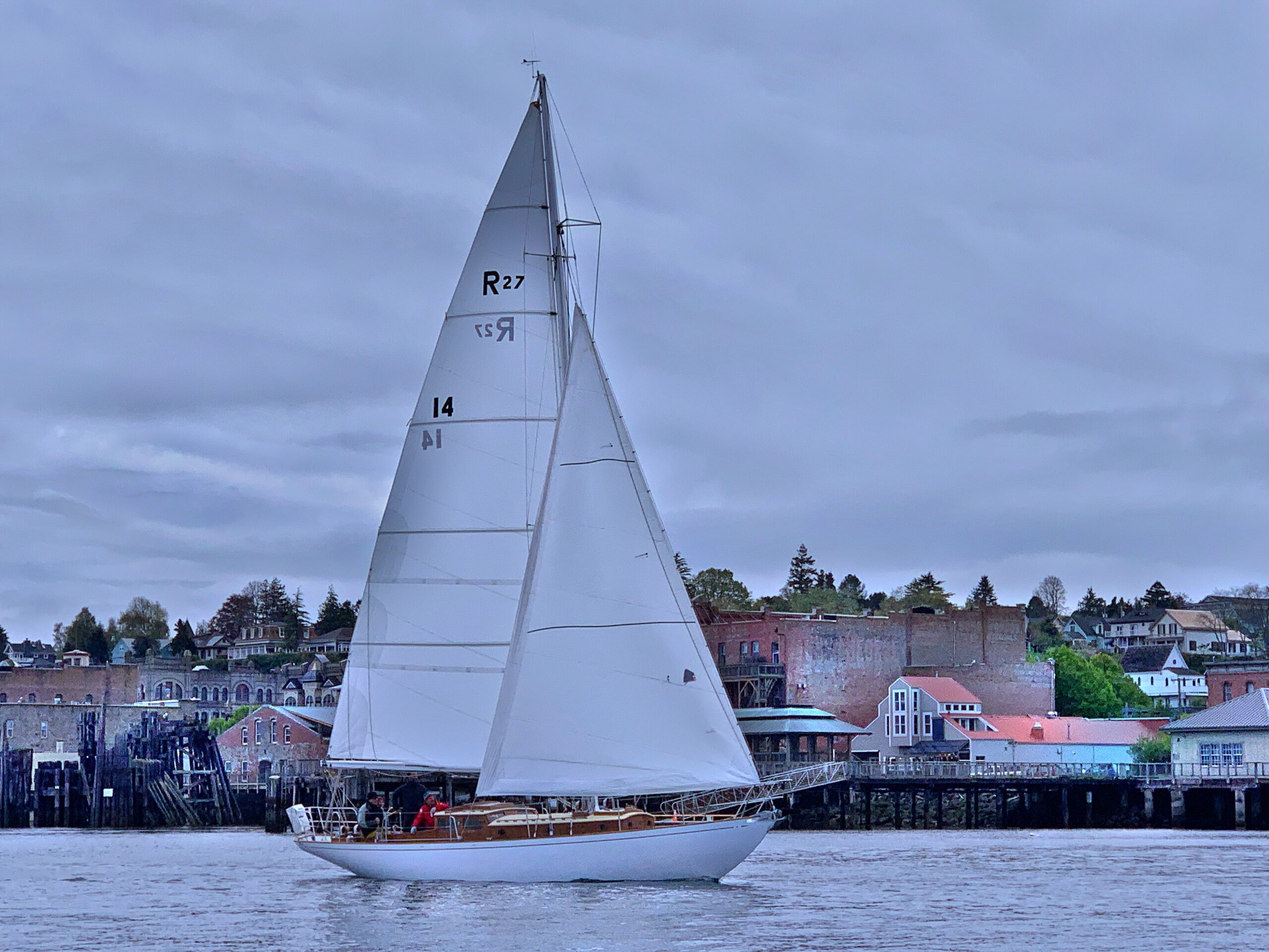 The original plan was to start at City Dock and go to the Point Hudson buoy then do two laps to the northern most morning buoy at Ft Warden and back to the PH buoy. The wind didn’t cooperate, but we did get one lap in. Falcon got a good start and lead to near the Marine Science Center where Corvo made a good decision to go way inshore and pulled ahead at the turning mark. Kuma San tried to catch up to no avail. Varya (such a beautiful boat) struggled in the light wind but enjoyed a nice evening on the water.