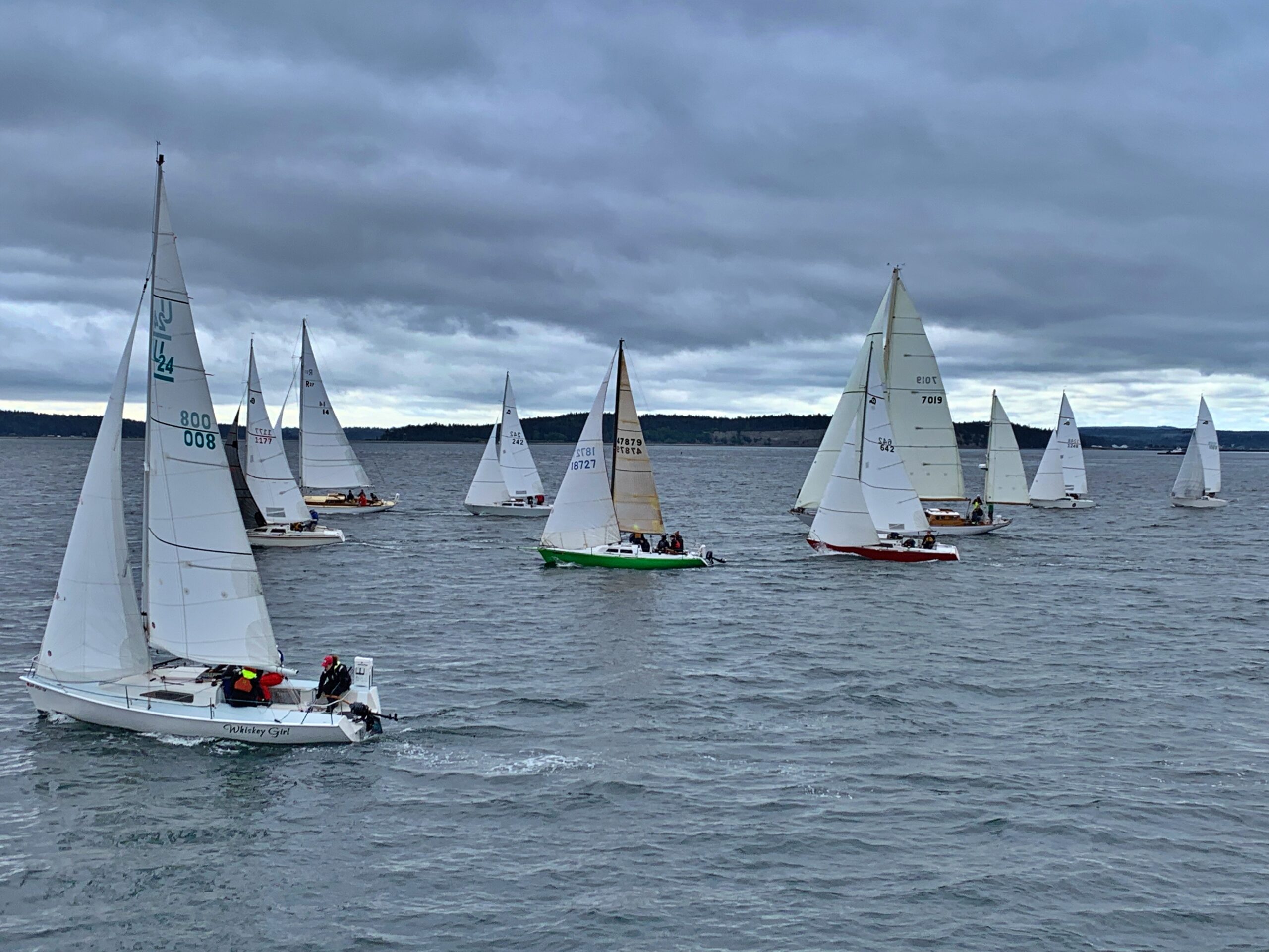 Eleven boat started and were seen putting up their spinnakers as they rounded Point Hudson. Three boats actually finished after a day of big wind shifts, wind holes, and strong currents.