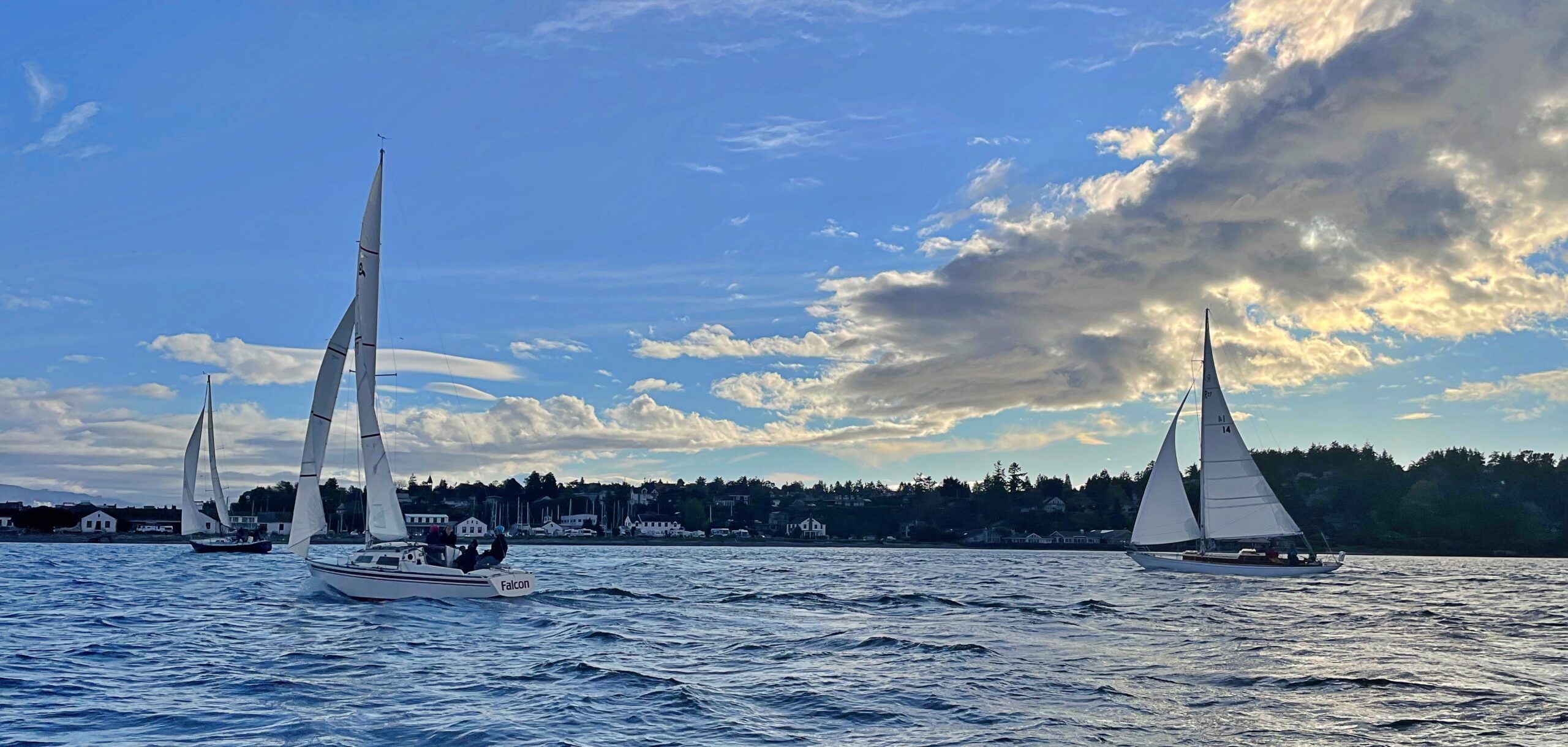 It was a breezy evening for the last race of the Friday Whitecap series. The wind, which was supposed to die at 5pm, did not read the weather forecast and continued to blow at 15 to 20 knots from the WSW throughout the race. The course was City dock, Indian Point, Tower, Indian Point, Pt. Hudson buoy, City Dock. Welcome to Shawn O’Connor and crew from Oak Harbor racing “What? A Tripp!!”, a Peterson 37. Varya had a particularly good night finishing second on corrected time. There is no race next Friday due to the Classic Mariners Regatta on the weekend. The Cat’s Paw series starts Friday June 10th.