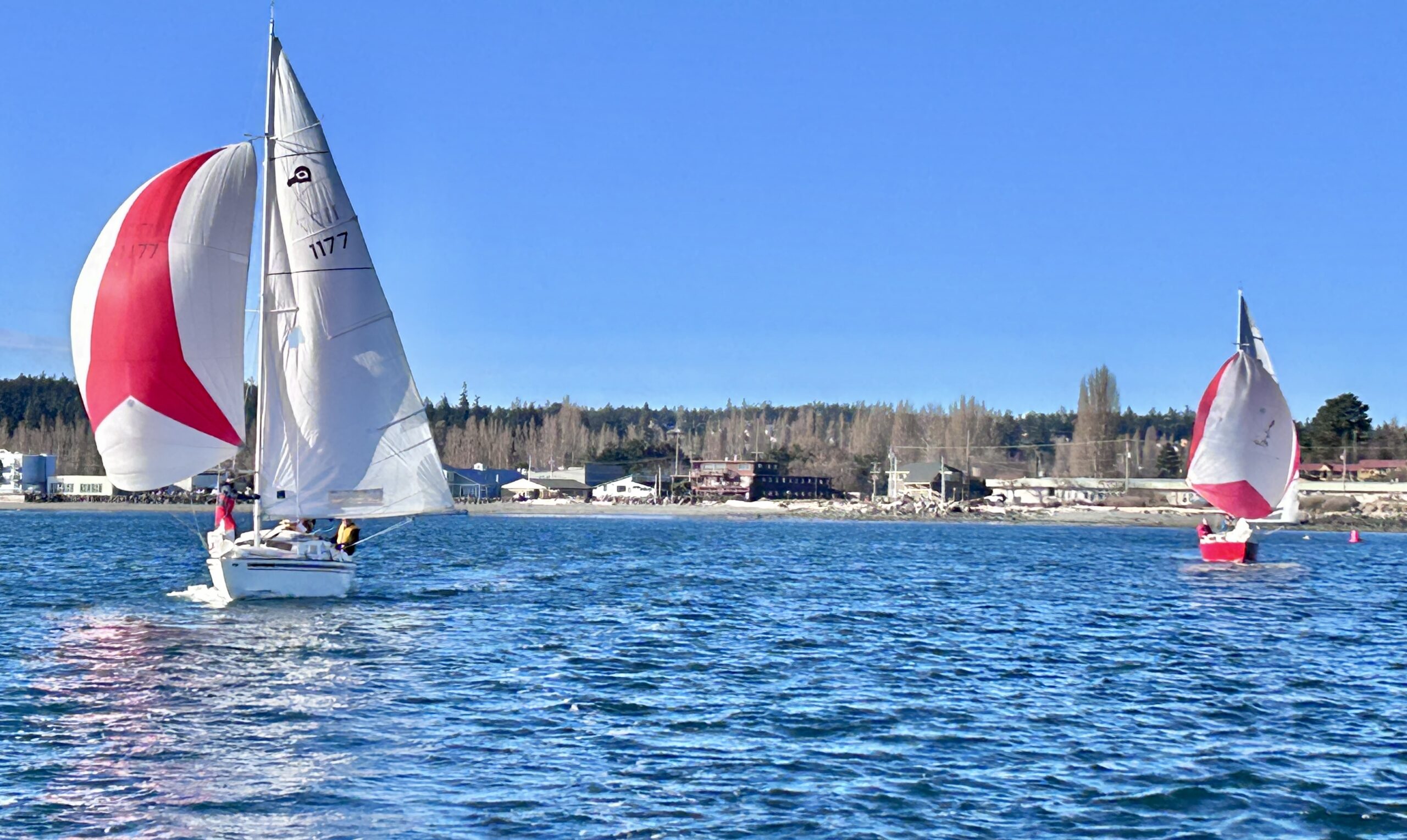 The forecast was for a small craft warning, the reality was 8-15kts and sunshine. Four Tbirds participated in three short two-lap races. Owl, Kuma San, and Falcon each got a win. Merlin was in the mix. All the boats were seen with hour-glassed or otherwise messed up spinnakers, and starts were a little shaky . Clearly, kinks were being worked out. But it was a great day.
