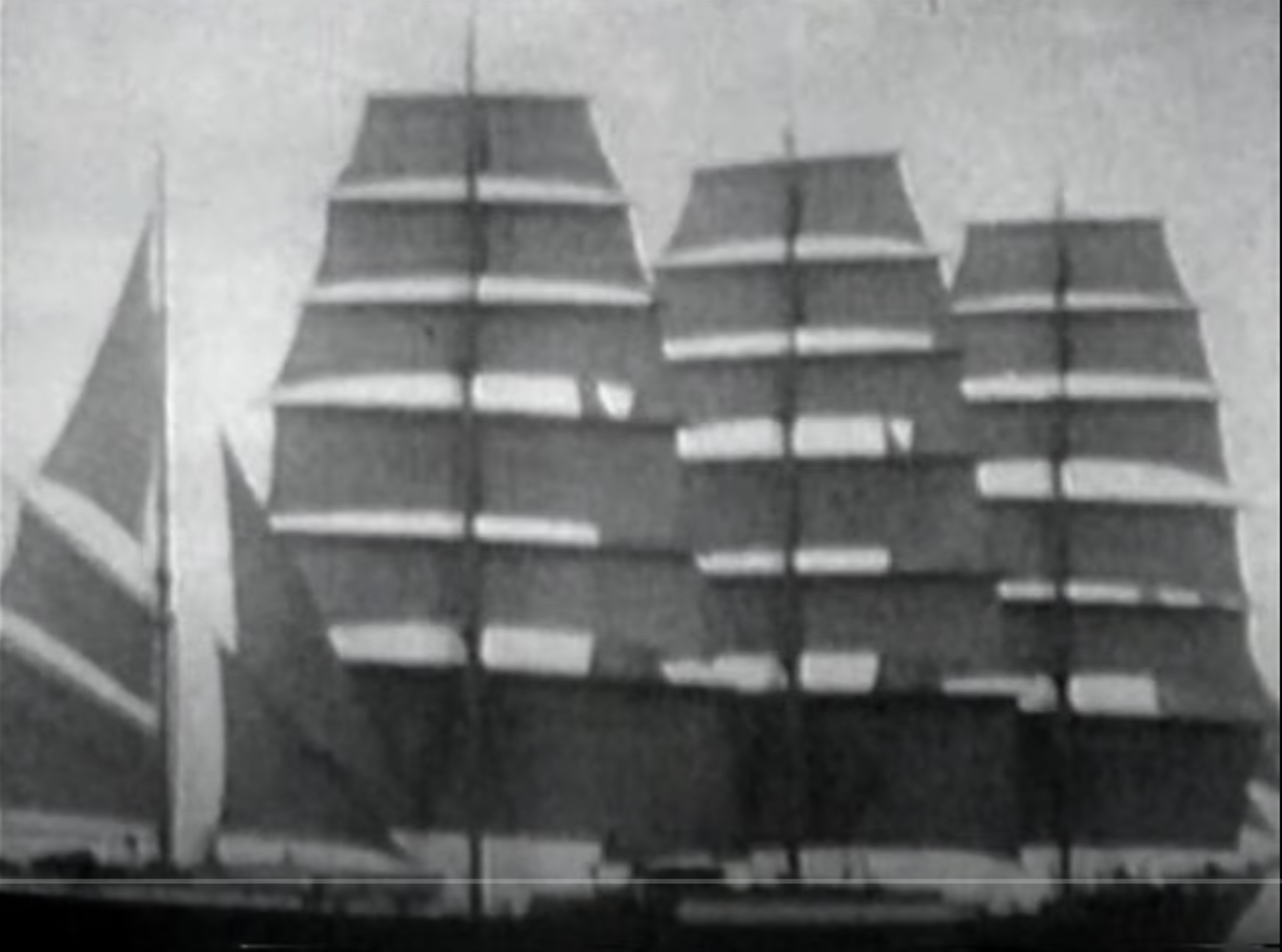 Wednesday’s movie is “AROUND CAPE HORN” by Irving Johnson. It is 38 minutes long and features footage from a 1928 voyage on the “Peking”, one of the last great sailing cargo ships. Johnson was an amateur photographer and was able to capture views of a huge storm from up in the rigging, as well as what day-to-day life looked like for the average seaman of the day.