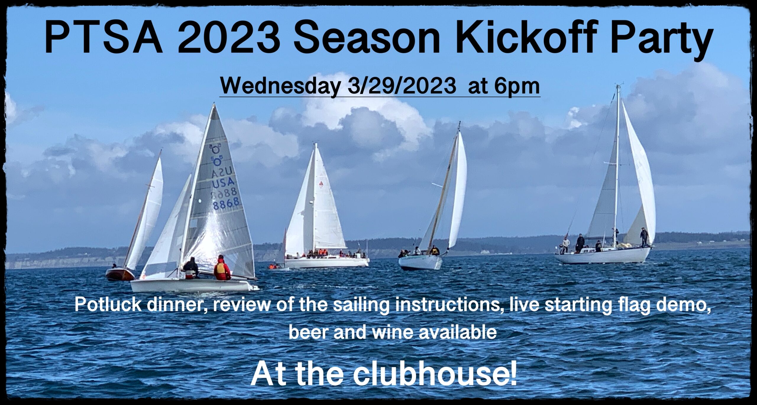 Kickoff Party This Wednesday (3/29/23) View Larger Image Potluck dinner, review of the sailing instructions, starting flag demo, and more… By Jim Heumann|2023-03-27T11:23:42-07:00March 27th, 2023|Meeting Announcement|Comments Off on Kickoff Party This Wednesday (3/29/23)