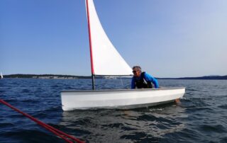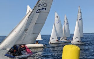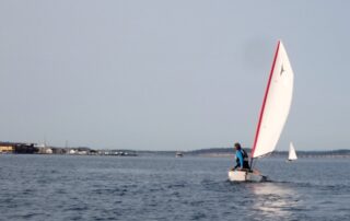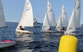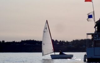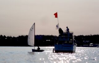 The first evening of the new dinghy racing series got underway on Monday. Thirteen boats (plus the committee boat) participated to the enjoyment of all. Such a great turnout bodes well for this new class of boats racing on PT Bay. Many thanks to those who have worked to make it happen. Get that Laser out of the back yard or the garage and join in next week.