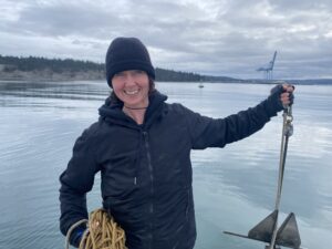 Amber Hocking retrieving “the mark” from the clutches of the Salish Sea