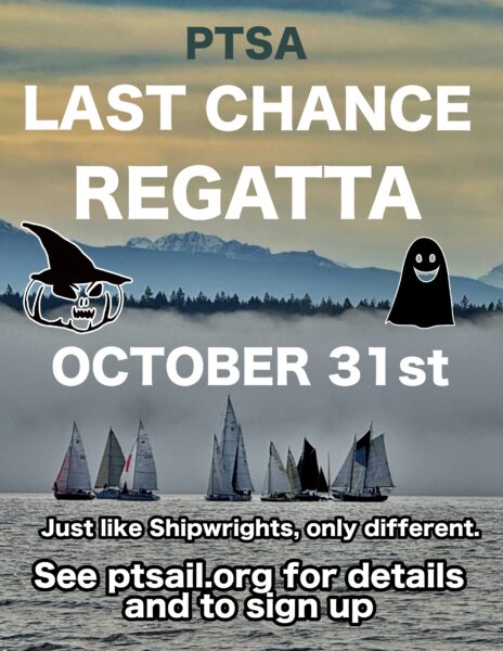 Port Townsend Sailing Association presents the Second Annual Last Chance Regatta; a race on Port Townsend Bay that’s exactly like Shipwright’s Regatta except different. Same weather. Same community vibe. Same race course. Same casual race format (first to finish wins).